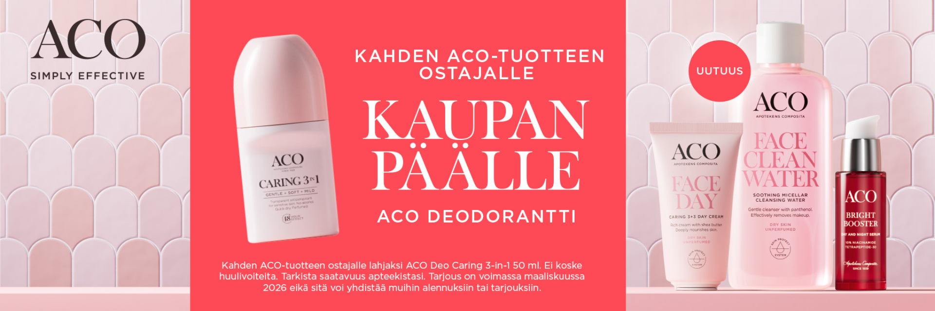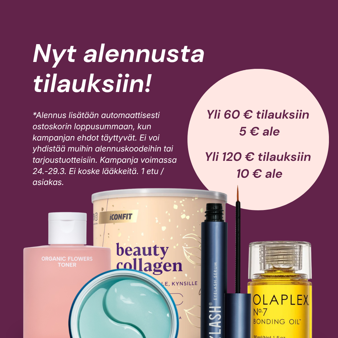 Tarjoamme nopean toimituksen, ilmaisen toimituksen yli 65 € tilauksille sekä laajan valikoiman tuotteita ja asiantuntevaa palvelua tukemaan sinua kaikissa elämäsi vaiheissa.