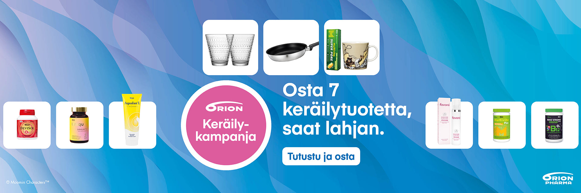 Tarjoamme nopean toimituksen, ilmaisen toimituksen yli 59€ tilauksille sekä laajan valikoiman tuotteita ja asiantuntevaa palvelua tukemaan sinua kaikissa elämäsi vaiheissa.