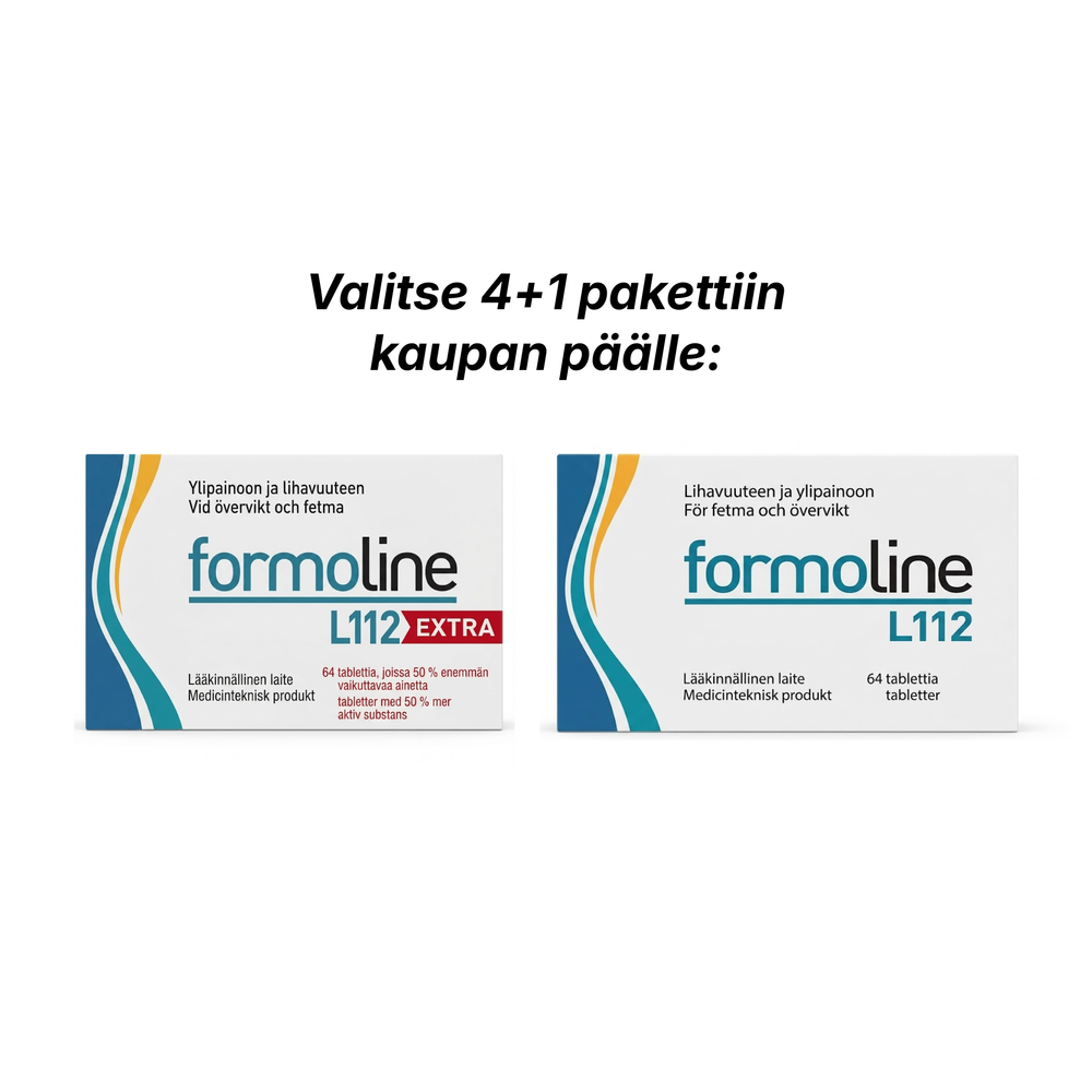 Tuotteesta on kaksi vahvuutta. Vahvempaa EXTRAa suositellaan henkilöille, joilla pudotettavia kiloja on enemmän. Valmiste sopii pitkäaikaiseen käyttöön ja saavutetun painon pudotuksen ylläpitämiseen. Formoline L112-tabletit saat apteekeista ilman reseptiä.