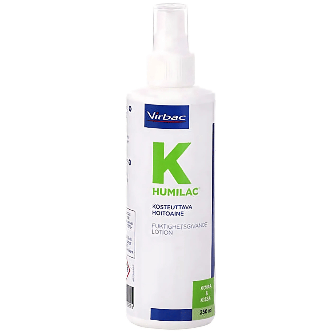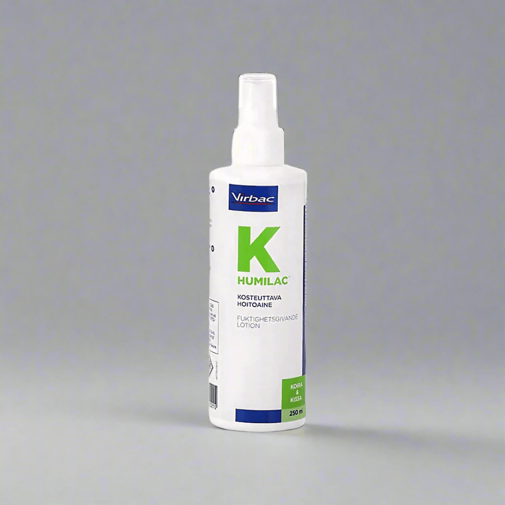 Humilac Vet on kissoille ja koirille tarkoitettu öljytön hoitoaine, joka auttaa kosteuttamaan kuivaa ihoa. Sen säännöllinen käyttö vähentää ihon hilseilyä ja tukee ihon hyvinvointia.