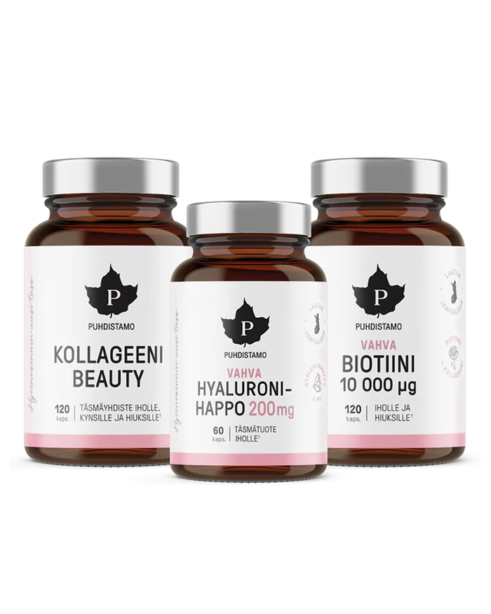 Kollageeni Beauty on kehitetty erityisesti ihon hyvinvointiin. Tämä tuote sisältää korkealaatuista kollageenia, joka auttaa ylläpitämään ihon kimmoisuutta ja hehkua. Sen lisäksi, että se tukee ihon terveyttä, se voi myös auttaa vahvistamaan hiuksia ja kynsiä.
