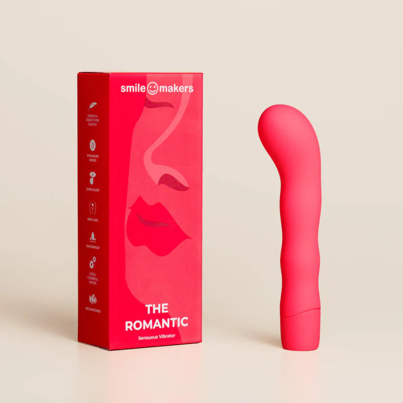 Smile Makers The Romantic on ylellinen ja pehmeästi värisevä G-pistevibraattori, joka tarjoaa kokonaisvaltaista stimulaatiota. Sen ainutlaatuinen, aaltoileva muotoilu ulottuu hieromaan kaikkia emättimen nautintopisteitä – ja pyöristetyn pään oma moottori kohdistaa erityisen tehokkaan värinän G-pisteeseen.