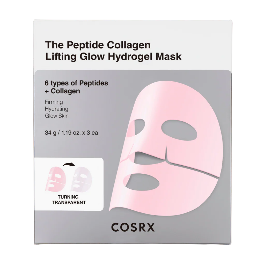 COSRX Peptide Glow Hydrogel Mask 3 kpl on ylellinen hydrogeelinaamio, joka tarjoaa iholle nopeasti kosteutta, napakkuutta ja heleyttä. Naamio sisältää 6 erilaista peptidiä sekä pienimolekyylistä hydrolysoitua kollageenia, jotka tukevat ihon kimmoisuutta ja sileämpää ilmettä. Lopputulos on täyteläisempi, raikkaampi ja luonnollisesti hehkuva iho, erityisesti väsyneelle ja samealle iholle.